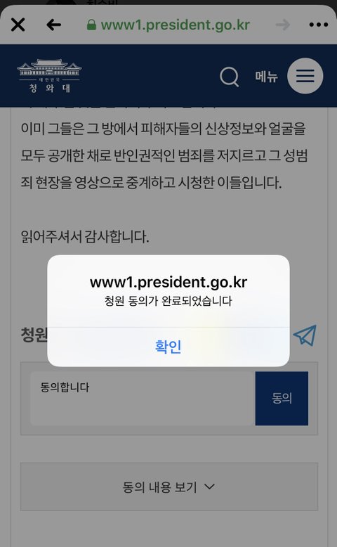 개인이 청원 했을지 안 했을지는 너네들이 결정하는거 아니양...니들 눈에 안 보인다고 막 욕 하는건 아님