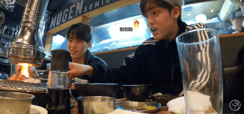 그렇게 고기 먹방 하다가 불 ㅋㅋㅋㅋㅋ 날뻔 해서 놀란 구콩이와 신나서 계속 장난치는 유빈잌ㅋㅋㅋㅋㅋ
