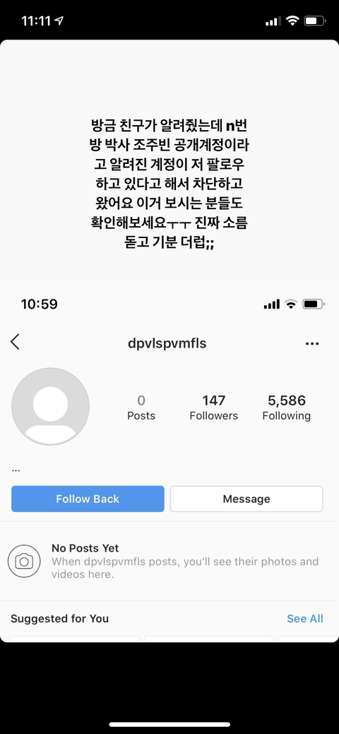 조주빈이 니네 인스타 팔로우하고 있던데?