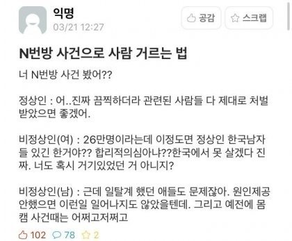 정상적인 남자라면 N번방 가해자들을 혐오하고 증오하고 있음