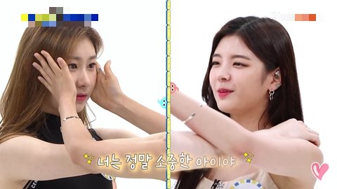 그래서 늘 누군가 울려고 하거나 따뜻한 칭찬 한마디 해주면 가장 먼저 우는 애야.. 실제로 아이돌룸에서 리아가 채령이 칭찬해주니까