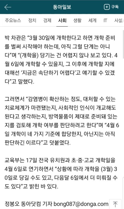 일단 지금 상황에서는 3월30일로 개학 앞당기는건 사실상 무리이고 4월6일 개학 속단하기 어렵다고 교육부가 발표함