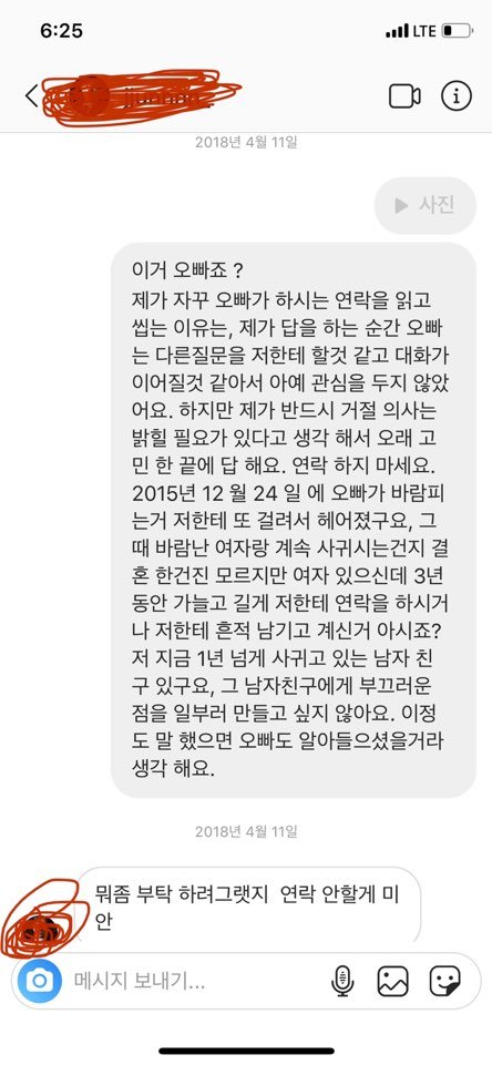 전남친 : 으휴 내가 괜히 연락하거 같네 ... 미안해 이제 연락안할게