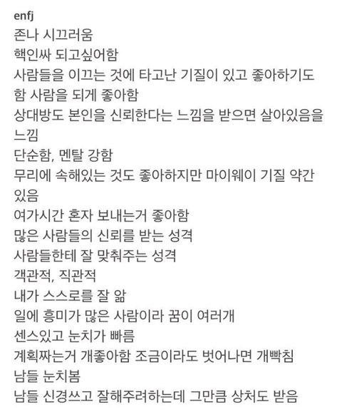 enfj라는데 ㅋㅋㅋㅋㅋㅋ 설명이랑 개똑같아 ㅋㅋㅋ 귀엽 ㅠㅠ