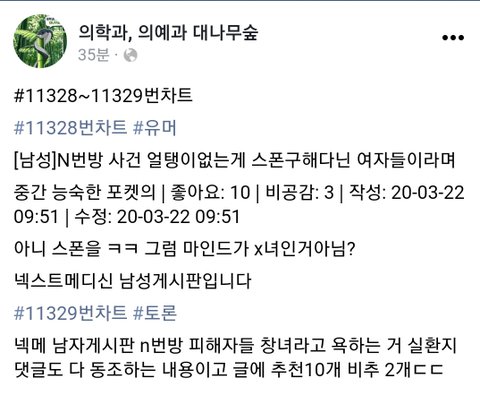 의대숲에 제보한 게 의미가 없을 정도로 댓글도 저판이니,,,, 무섭습니다