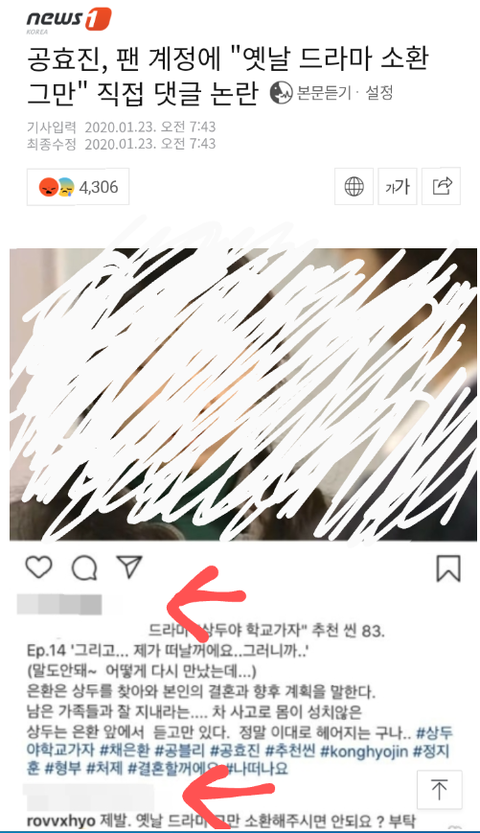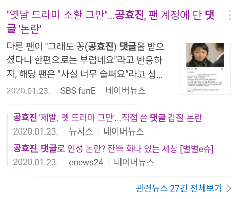 1.23 주요 언론사들이 계정태그했다는 언급없이 팬이 불쌍하고 공효진이 갑질했다는 늬앙스를 풍기며 기사를 쏟아내기 시작