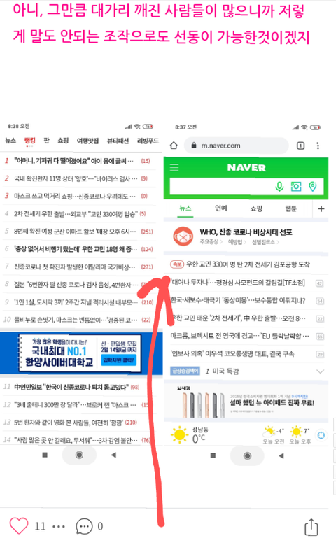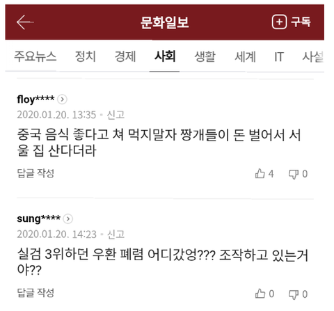 위의 언론사(글 : 강현숙 여성조선 온라인팀 2020-01-23 15:00 기사)는 조회수 많아 보이거나 기사 보도일 바로 전날 문제가 생겼다고 보이게 다른 날짜의 캡쳐 화면을 연결시킨듯함