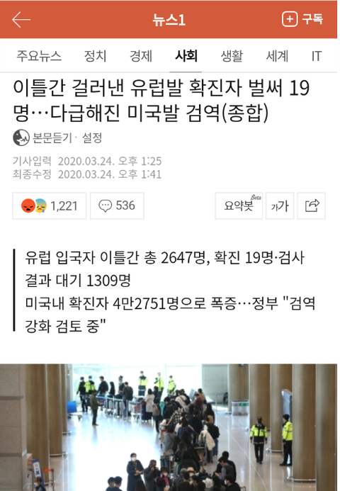 3.23부터 유럽, 미국 등 교민 외국인 입국을 막아야 한다는 여론에도 불구하고 1월에 중국인들 입국을 막아야 한다는 상황을 무시한 대로 되풀이중