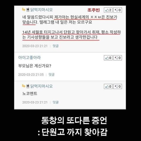 1-(1) 조주빈 동창 관련글이라고 올라온 글은 조작으로 판명됨