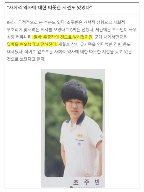 6-1.일베 혐오하는 조주빈과 세월호 인터뷰한 조주빈 -중앙일보 기사 내용임 (앞서 세월호 위해 단원고 찾아갔던 조주빈 참고바람)