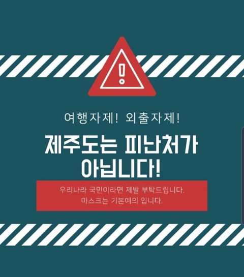 2. 그리고 몇몇분들께서 적어주셨는데 제주도는 섬입니다. 특수지역입니다. 육지만큼 의료시설이 좋지 않습니다. 제주도에 있는 많은 분들도 위험이 있다고 생각하거나 자신이 원하면 출산을 육지로 가서 하고 올만큼 특수지역이 맞습니다. 그리고 누군가에겐 그저 여행지에 지나지 않을 수 있는 곳일수 있지만 많은 사람들에겐 사랑하는 가족과 함께 지내는 삶의 터전입니다. 전국, 아니 전세계가 위험에 빠져있는 시기에 서로 조심하자고 말한 것이고 당연히 제주도뿐만 아니라 모든 국민이 자국 또는 해외의 이동 자체를 자제해야 된다는 말이었습니다. (쇼핑몰뿐 아니라 모든 여행도 포함됩니다.)