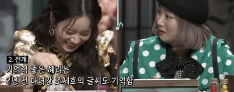 기억력 좋은 혜리는 2년 전 다녀간 조세호의 글씨도 기억함