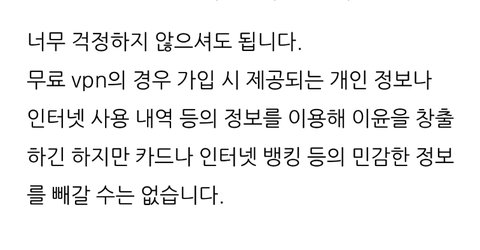 ### 일단 vpn 을 하면 너 개인정보가 빠져나갈수 있다는점 알아둬 ! 그런데 내친구도 어제 댓글 몇몇 판녀들도 vpn 우회 사용을 한달이상했는데 아무 이상없었다는 애들 많았어! ###