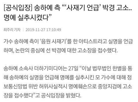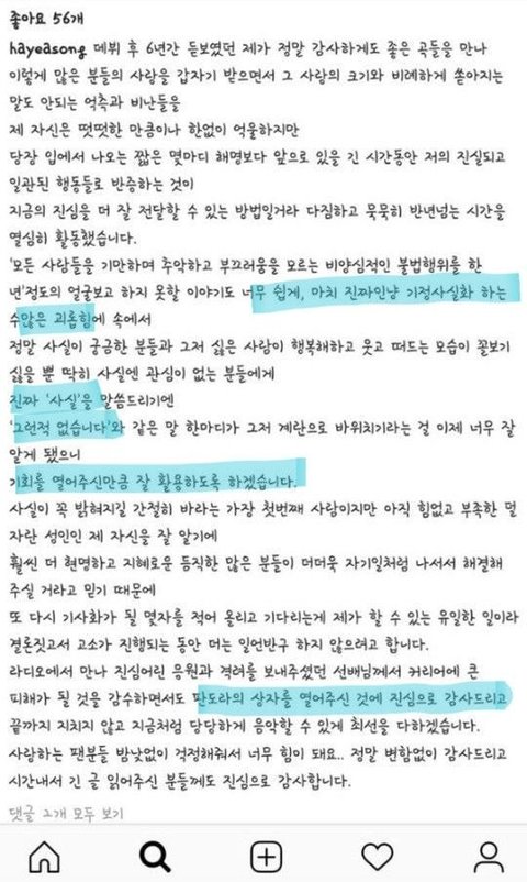 사재기 판도라의 상자를 열어줘서 감사하다던 송하예