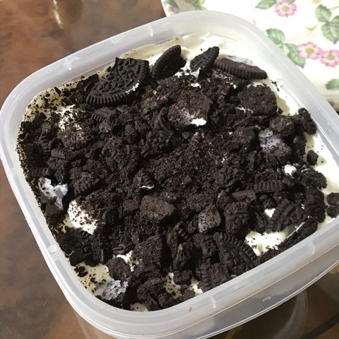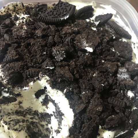 그리고 맨 윗층엔 오레오를 좀 뿌셔(비닐봉지 같은데 넣고.. 그리고 넘 잘게 뿌수면 안이쁨 적당히 잘게 뿌셔) 촤라라라락 뿌려주면 완성⭐️