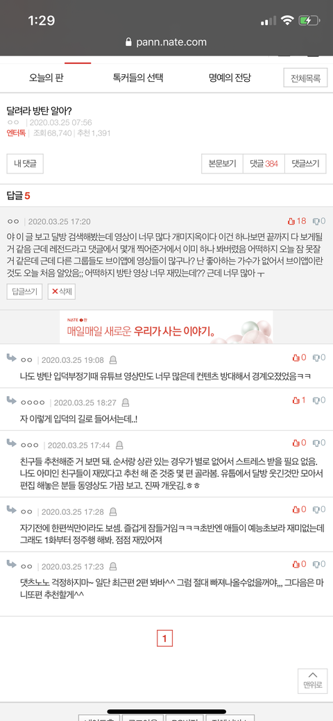 나 엔터에 달방 글 보고 이 댓 남겼었는데
