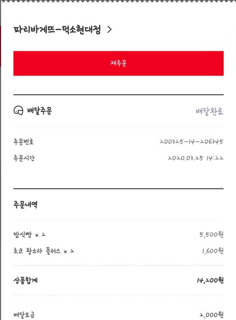 App을 통해 파리바게트를 주문하여, 밤식빵을 먹었습니다.