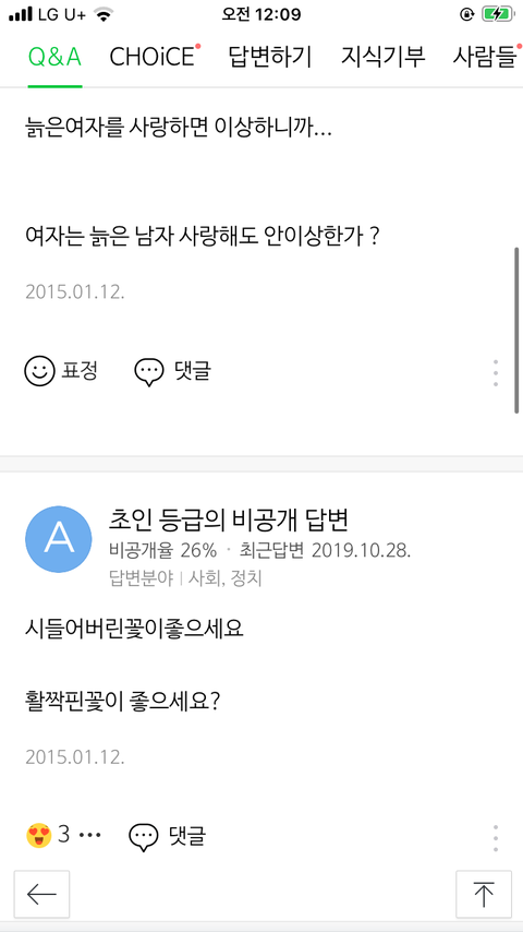 과제땜에 사랑하는 이유 검색했는데 지식인 저거 떠서 뭐지 하고 봤는데 답변 수준봐..