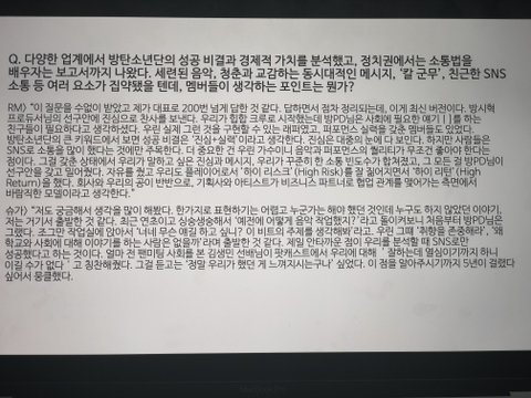 혹시 이 질문들 어디서 했던 인터뷰인지 알려줄 수 있을까? 출처를 모르게써...