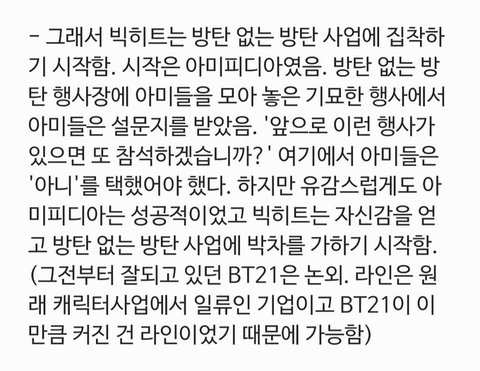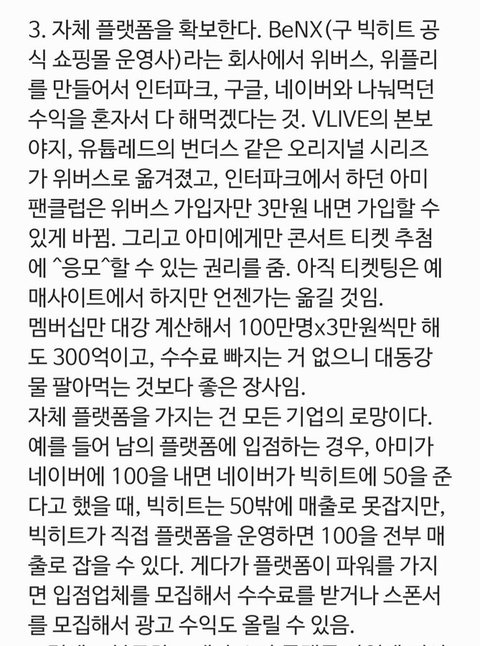 2. 빅히트는 방탄 말고는 인프라가 없음. 그래서 방탄 없는 방탄 사업에 집착함