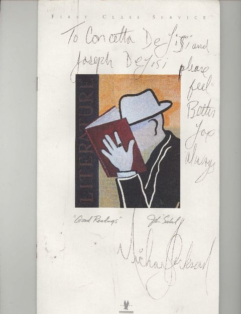 사진은 전혀 찍지 못했지만, 마이클은 저희 가족에게 정말 놀라운 기억을 선물해주었습니다. 마이클 잭슨의 마음과 영혼, 그리고 진실된 친절함을 보여주는 그런 기억이요. 아, 이건 비행기에서 마이클이 사인해준 일등석 메뉴판입니다.