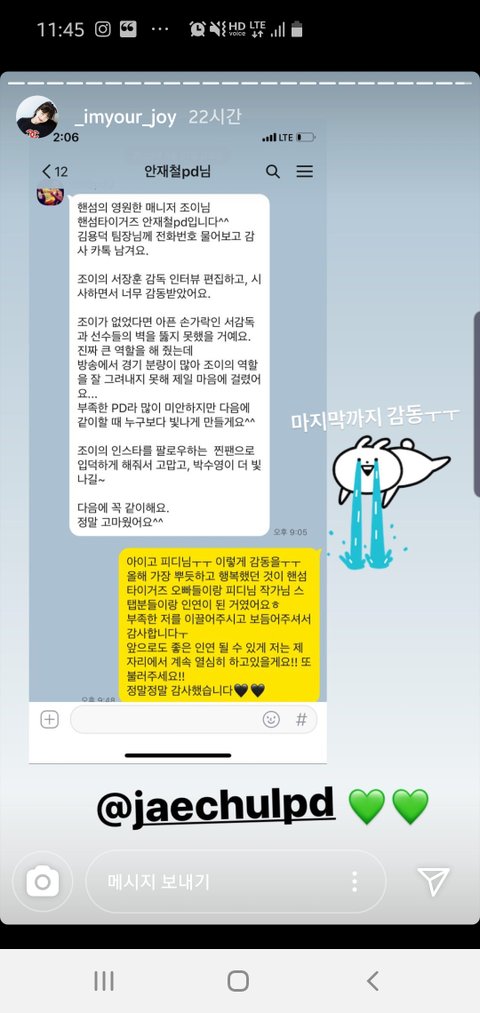 와 얼마나 착하면 저렇게 스탭들이랑 pd한테 편지받고 카톡 받냐
