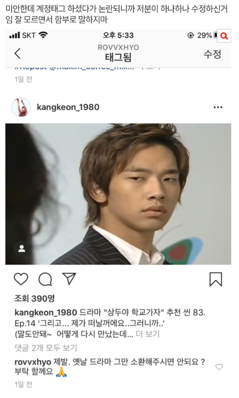 1. 팬이 몇 개월간 지속적으로 공효진 계정을 태그하며 옛날 드라마를 올림
