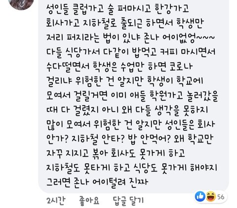 저번에 판에 올라온 개학하면 벌어질 일 퍼간 글에 달린 댓글임