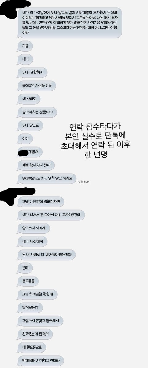 쓰니 돈만 빌린 것이 아니라 다른 사람도 있고, 나는 지금 핸드폰까지 사기 친 사람한테 뺐겼었다. 그래서 연락이 되지 않았고, 이미 경찰서를 왔다갔다하고있다.” 라는 변명을 듣게 되었습니다.