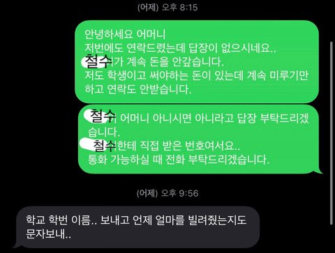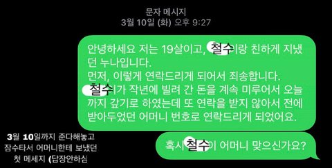 다시 한 번 말하지만 애초에 돈을 빌려주지 말았어야지 라는 댓글은 달아주시지 않았으면 좋겠어요!