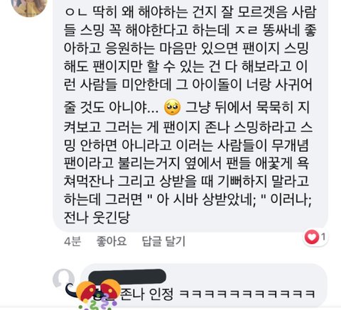 내 삶이 행복해지니까 덕질하는거지. 그 중에 하나가 스밍이니까 말하는거지