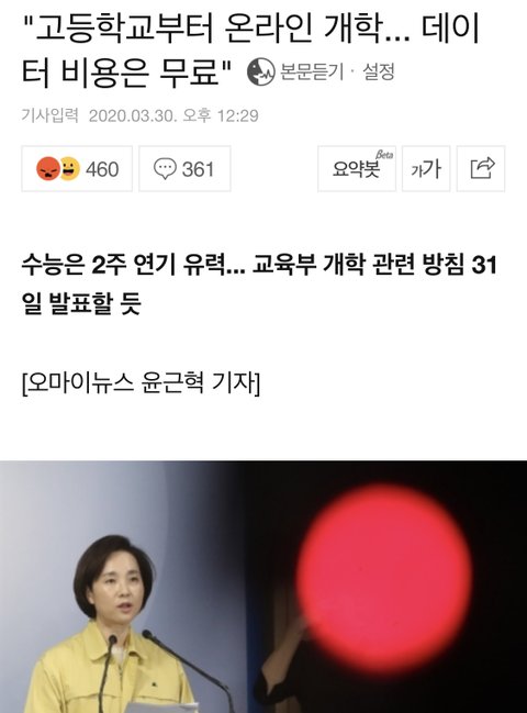 추:아니 온라인으로 제대로 수업이 될 것 같냐고.. ㅈㄴ 목숨+건강 위에 교육이 있는 것도 아니고 1순위는 건강 아니야? 굳이 이 시점에 개학 해야 함? 그리고 온라인으로 절대 제대로 수업 안된다고;; 그냥 단체로 개학 연기 해;; 건강 잃으면 공부고 뭐고 다 필요 없어.