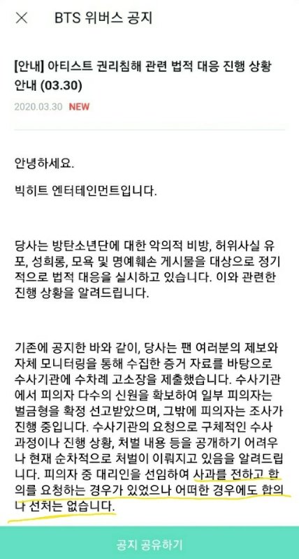 올해부터는 지속적이고 정기적으로 더 엄정하게 아티스트 보호 들어가니 적극적인 제보 부탁 드린단다~~ 탈판 할까 고민했는데 이맛에 판하지 얘들아 적당히 몸 사리면서 손가락 놀려라~~합의나 선처 절대 없단다~~