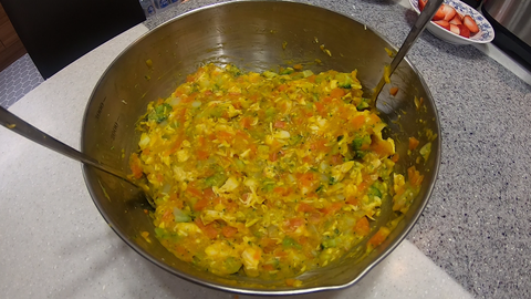 단호박, 닭가슴살, 당근, 브로콜리, 코코넛가루를 넣고 섞어주었어요~