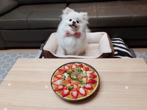빵틀에 쌀가루+우유(강아지전용or락토프리)+계란을 넣고 만든 반죽을 펴 주고