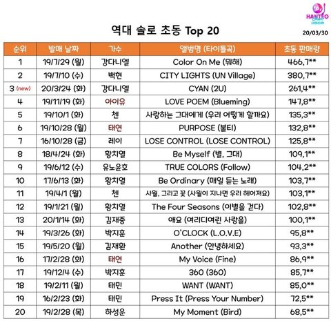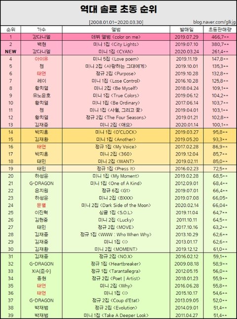 역대 솔로가수 1위 3위