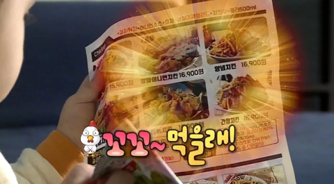 이번에도 전단지를 보면서 상상 먹방을 보여줌ㅋㅋㅋㅋ