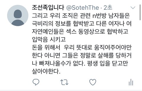 다른 의뢰자나 관련 n번방 여성 신고자가 있으면 관련 아이나 관련자들을 정보협박 및 살해를 합니다. 다단계보다 무서운 조직입니다