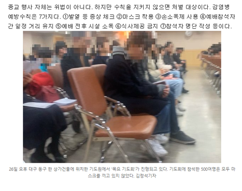 기도원 전원다 코로나 검사하고 양성 나온사람 개인부담 치료하고 벌금도 때려라
