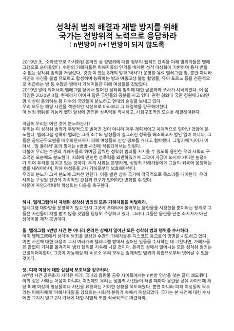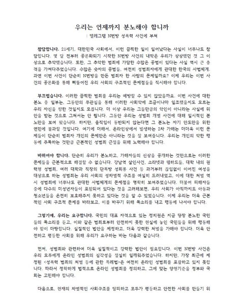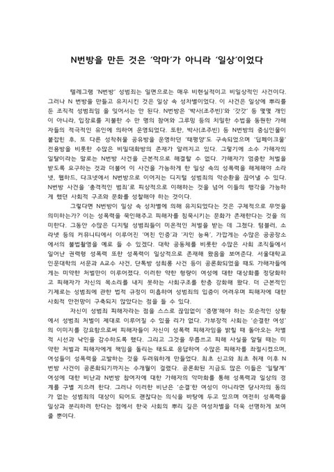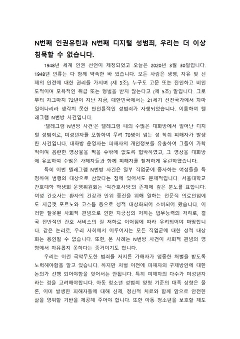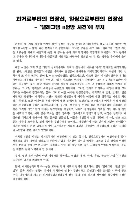 n번방에 대한 분노와 외침은 그대로입니다.