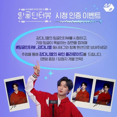 강다니엘의 팅글인터뷰를 시청하고 가장 팅글이 폭발하는 장면을 캡쳐해 #팅글인터뷰_강다니엘 해시태그와 함께 멘션으로 보내주세요! 추첨을 통해 싸인 폴라로이드를 드립니다.