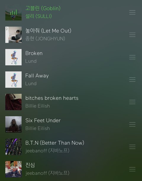 Broken - 이거 되게 분위기가 암울해서 좋아해 가사 내용도 약간 그런 내용일 걸? 우울할 때 책 읽으면서 보면 되게 차분해지고 좋아