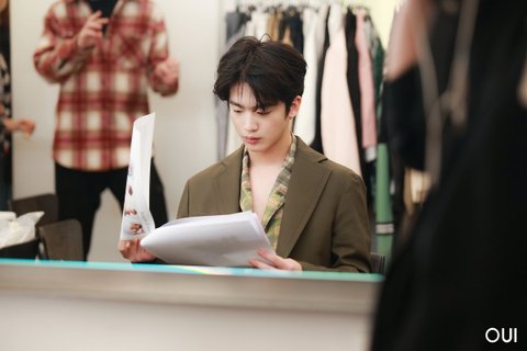 화보 촬영전에 대기실에서 이번 화보 컨셉이 어떤지 숙지하는 모습..