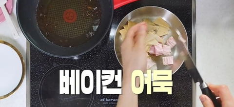 베이컨과 어묵을 넣고