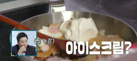 아이스크림을 후라이팬에 넣음..