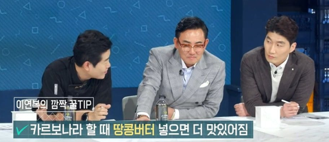 까르보나라 할 때 땅콩 버터를 넣으면 더 맛있다는 팁도 알려주심ㅋㅋ