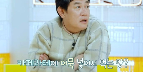 카페라테에 어묵 넣어서 먹는 맛이냐고 물었고,