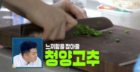 거기에 느끼함을 잡아줄 청양고추를 쫑쫑 썰어 넣으면