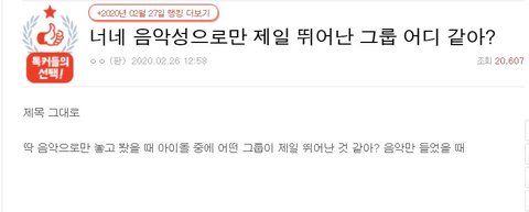 자랑인데 나 데식 팬톡 채널 있는지 모르기전에 쓴 댓글인데 나 꽤 추천 많이 받아서 마데들한테 자랑하러 와쏘 ㅎㅎ잘했지이 근데 늦게 단 댓글인데도 불구하고 추천수 꽤 올라가서 나 정말 기뻤어 이러다가 내 콘서트 자리는 있겠지?ㅠㅠㅠ농담사마 하는 말이지만 저번에 넛크래커 트위터 실트 올라간거 보고 진짜 우리 1군 아니냐는 말 나오는데 진짜인거 같아 아 행복해..아아 하루가 짧다 ㅠㅠ