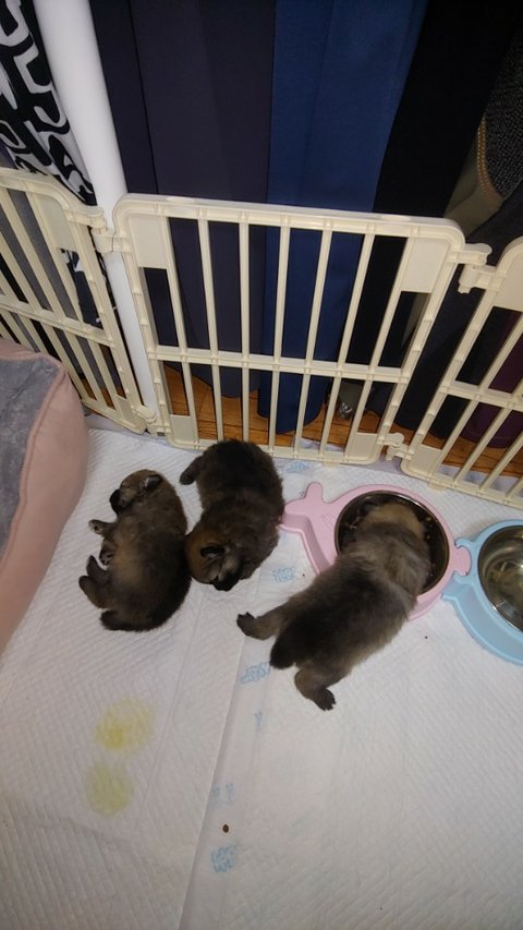 우리 삼둥이 눈 뜬게 훨 이쁘고 크면서 털 색 완전 바뀌는데